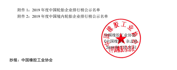 公示|2019年度中國輪胎企業排行榜